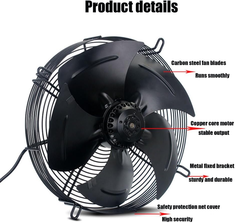 Outer rotor axial flow cooling fan mesh cold dryer condenser machinery strong windsProduct DetailsVoltage: 220V/380VType: External rotor fanMaterial: Carbon SteelNumber of leaves: 5Fan pressure: Low pressure fanTurbine head material: metalMotor power: 420WWeight:11KGYou will receiveAxial flow fan * 1Product manual * 1
