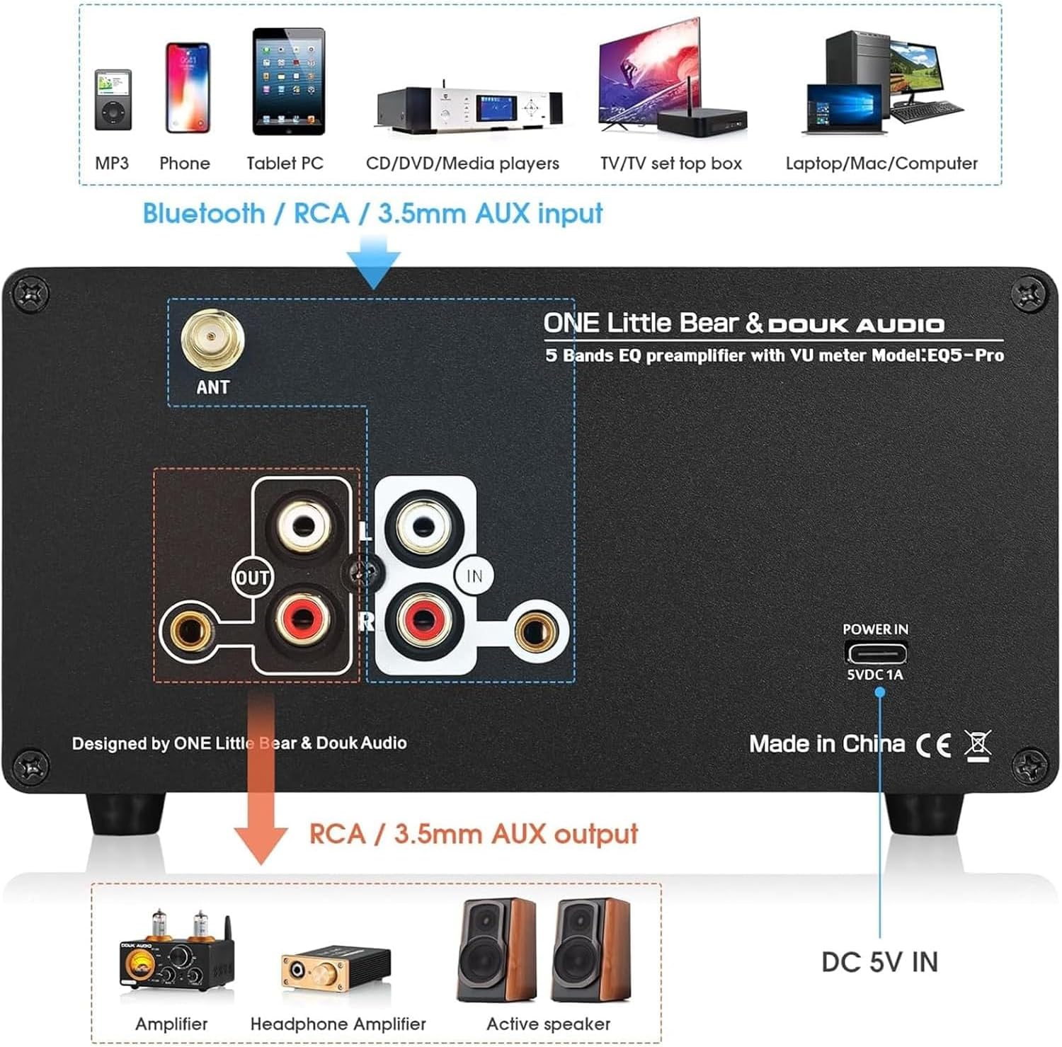 Elevate your audio experience with our advanced Audio Preamplifier, designed for music lovers and professionals alike. This versatile device seamlessly connects via Bluetooth, stereo, or a 3.5mm AUX input, making it compatible with a variety of audio sources. Whether you're hosting a gathering, enjoying a movie night, or refining your recording studio setup, this preamplifier enhances sound quality and delivers a rich, immersive listening experience. With an impressive frequency response of 5Hz to 20kHz and minimal total harmonic distortion of just 0.003% at 1kHz, our preamplifier ensures that every note and nuance is crystal clear. The adjustable EQ bands (100Hz, 400Hz, 800Hz, 4KHz, and 10KHz) allow you to customize your sound profile, while the L/R channel balance adjustment gives you complete control over your audio output. Designed for convenience, this preamplifier features a user-friendly USB Type-C power interface and operates on a DC 5V (≥500mA) supply, making it easy to integrate into your existing setup. The built-in VU meter, with a 45mm diameter, provides real-time monitoring of your audio levels, ensuring optimal performance every time. Compact yet powerful, the preamplifier measures 164x108x82mm and weighs just 730g, making it an ideal addition to any audio setup without taking up too much space. Whether you're a casual listener or a serious audiophile, our Audio Preamplifier offers exceptional value, making it a must-have for anyone looking to enhance their sound quality. Unleash the full potential of your audio equipment with our premium preamplifier today!