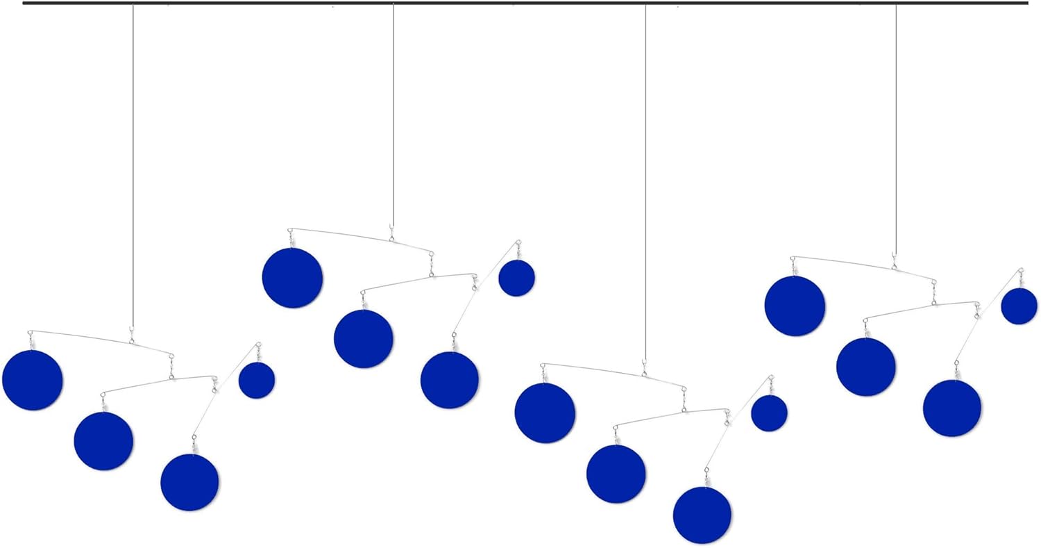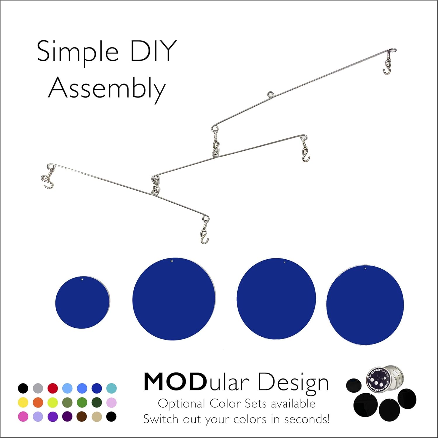 Exciting new DIY Kit! MODular styling... dramatic simplicity... beautiful colors! Display one or several mobiles for a dramatic look in your home or office. And don’t forget to perk up your work from home office too! The Atomic Mobile is a new concept in hanging kinetic art mobiles, hang one or several to create a head-turning look. Switch out the colors any time you want with optional Color Sets. Looks fabulous over countertops, beds, sofas, dining tables, or almost anywhere. Hand made in Los Angeles, California by artist Debra Ann. You receive the circle shapes and the pre-assembled wire mobile framework. Simply attach the circles onto the S-Hooks and you're ready to hang and enjoy! Each mobile comes with all necessary hanging hardware, hanging instructions, and a signed Certificate of Authenticity. The color shapes are made from 1/8" thick glossy finish clear acrylic and the arms are high quality stainless steel wire. If you'd like different colors, please see the Color Chart and send a message.