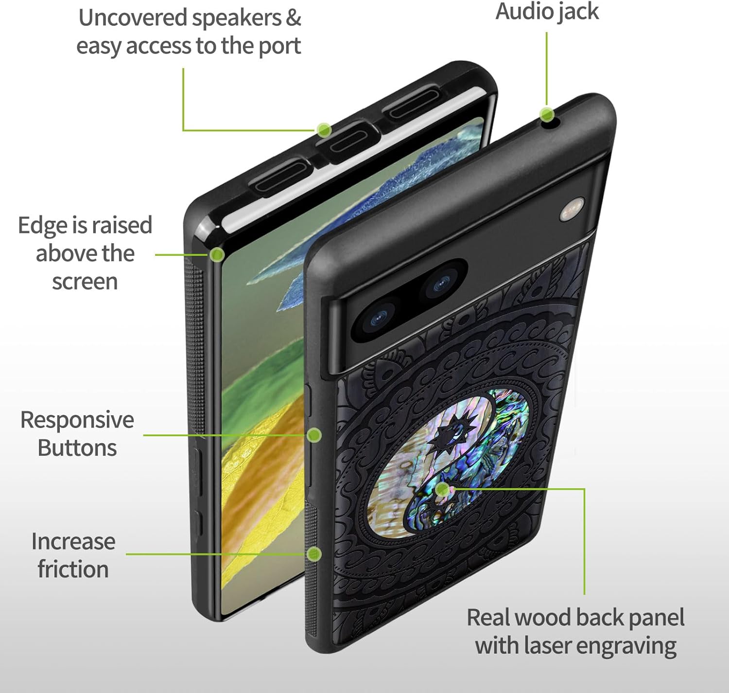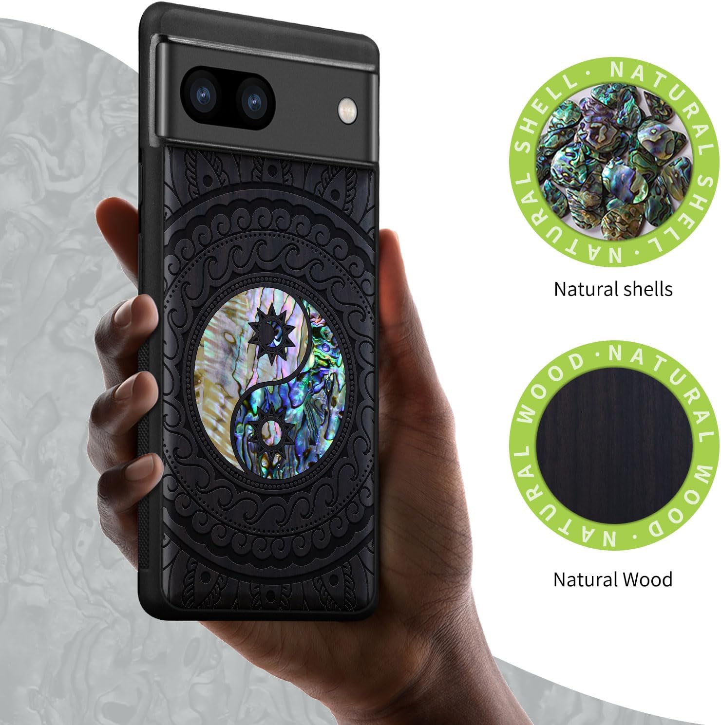 | Additional Features | Natural solid wood back panel and laser engraving, The unique solid wood keeps the palm dry and prevents fingerprints from sticking to the surface of the case, keeping it clean and elegant |