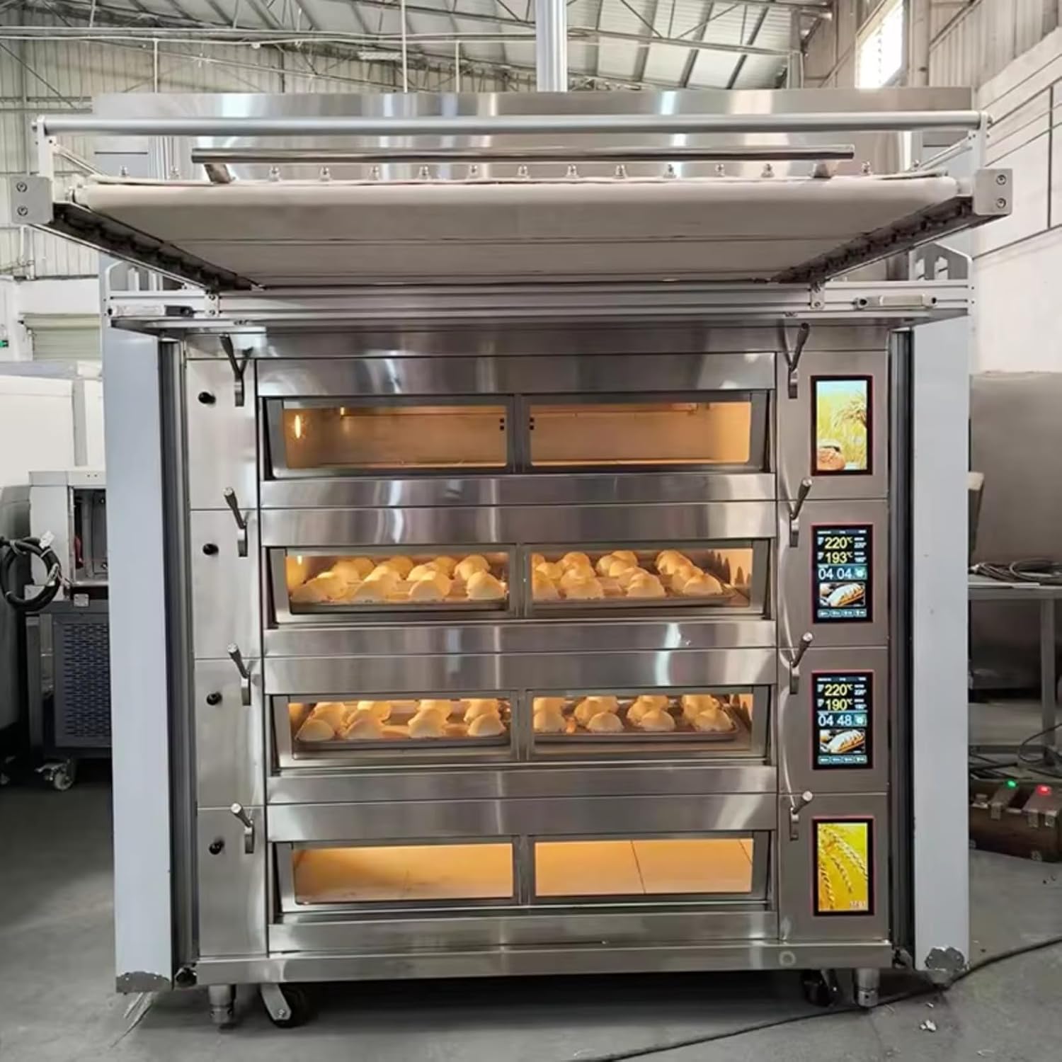 warranty:1 Year model number:BSDK brand name:Bakesphere place of origin:Guangdong, China application fields:Vegetable Processing Plant, Cannery, Flour Mill, Commercial Catering, Snack Food Factory, Bakery Control Type:Manual Control, Digital Control, Touch Control, Button Control, Knob Control dimension(l*w*h):optional integrated loader Door style:Hinged Door, Dropdown Door Installation Type:Freestanding machinery function:baking Number of shelves:1 output product name:bread, cake, cookie, pizza, etc oven size:for 4 deck 16 trays of 400x600mm Overall Dimensions:optional integrated loader Power:50000 Power Source:Electric Material:Milk, Corn, Nuts, Soybean, Flour, Vegetables, Stainless Steel Special Feature:Steam Feature, Overheat Protection, Removable Crumb Tray Temperature range:10 - 260°C, 30 - 500 °F Timer:Built-In Timer voltage:380 V weight:1500KG Product name:electric deck oven with optional loader Application:bakery, restaurant, hotel etc Heating Way:electric Warranty:1Year Usage:Food Industry Equipment Voltage:330V 3N~ Function:baking bread, cake, baguette, cookie, pizza, loaf, toast, etc Capacity:for 4 deck, 16 trays of 400x600mm Commercial Bakery Baking Equipment Large Capacity 16 Trays Electric Bread Baking Oven Deck Oven with Optional Integrated Loader Product Description Product name electric deck oven, bakery bread baking oven, bakery machine Material stainless steel Size with optional integrated loader Capacity 4 deck, 16 trays of 400x600mm Heating Way electric VOLTAGE&POWER 380V 3N~ N.W 1000kg Application bakery, restaurant, hotel, food factory, pizza shop, cake shop etc Main features High-Volume Electric Deck Oven with Integrated Loader A premium electrically heated deck oven designed for exceptional baking performance across a wide product range—from delicate pastries to artisan bread and heavy dough varieties. Featuring a modular design to accommodate varying production needs, this oven offers independently adjustable top and bottom heating for each deck, ensuring precise baking control. Ideal for bakeries, patisseries, hotels, restaurants, and catering businesses. Product Images Factory Show Similar Products