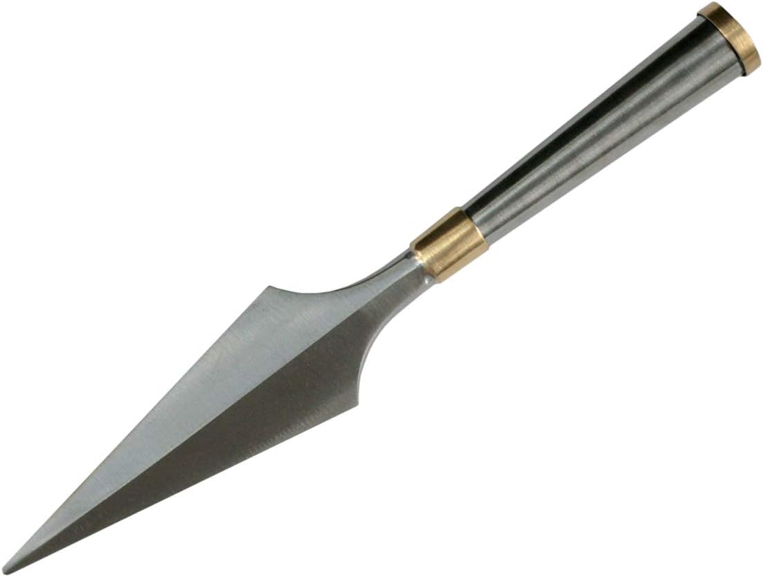 Spear Point (Qiang) Training Tool for Kung Fu, Wushu and other Martial Arts; Snap on and attach to wooden or metal rods. Made of high quality stainless steel, matt silver with gold details; shaft with hole for screw/bolt. Total length 30cm (tip: 17cm); Weight: 250g, Inner shaft diameter: 23mm. .
