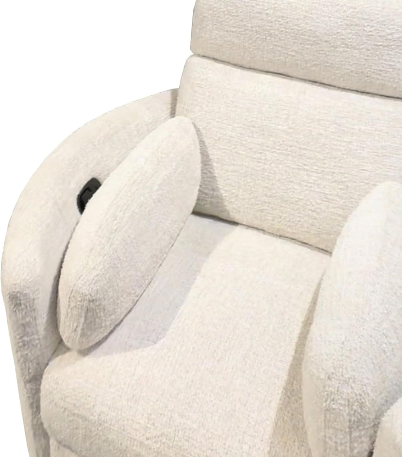 Perfect for relaxing at the end of a long day, this Manual Radius model features a soothing gliding motion and smooth manual reclining for ultimate comfort.Features:- 240-degree swivel feature soothing gliding functionality- Chaise-style footrest provides continuous leg support- High grade foam layer (1.8 to 2.2 density) adds plush cushioning and maintains its appearance overtime- 100% Luxury high density foam cushions wrapped in fiber- Luxurious foam (1.8- to 2.2-density) provides plush cushioning- Removable back for easy transport and positioning in small spaces- Conveniently located black pull hides inside the arm- Easy-to-operate smooth manual reclining for ultimate comfort- 350 LB weight limit- Includes 2 comfort pillows for additional support- Pillows are packed underneath the chairSpecifications:- Color/Finish: Angora Linen- Material: 100% Polyester (S)- Style: Contemporary- Product Dimensions: 41"W x 39"D x 40"H- Product Weight: 103.4lbs.- Product Width: 41"- Product Height: 40"- Weight Capacity: 360lbs.- Seat Dimensions: 17"W x 22.75"D x 20"H- Back Dimensions: 23.5"W x 24.5"H- Adjustability: Manual Reclining- Assembly Required: Yes- Commercial/Residential: Residential