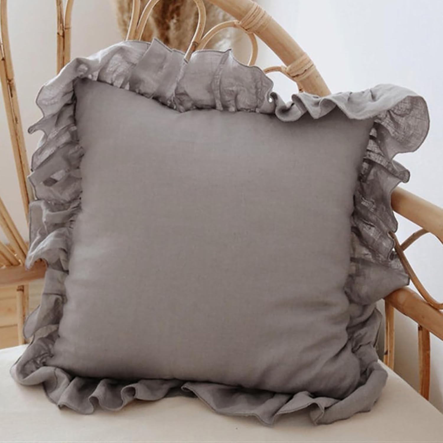 Insun Set of 2 Ruffle Throw Pillow Covers, Linen Decorative Throw Pillows Covers