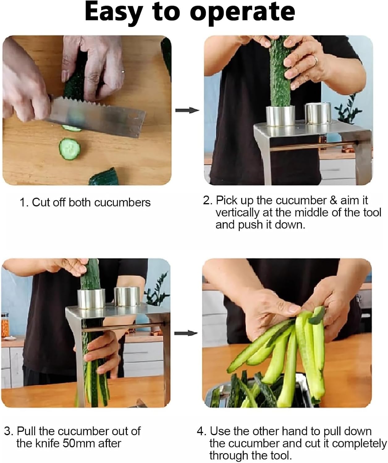 Elevate your kitchen experience with the Handy Carrot Stick Cutter Tool! This versatile and efficient stainless steel manual cucumber cutter is designed to make meal preparation a breeze. With a cutting diameters of 45mm, you can effortlessly create perfectly uniform slices for your favorite dishes, whether it's refreshing salads, delicious sushi rolls, or easy-to-prepare snacks. Specifications: Name: Manual Cucumber Cutter Material: 304 Stainless Steel Size: 225 * 180 * 332mm Net Weight: 1.95kg Cutting Speed: 10 Slices/Minute Cutting Diameter: ≤45mm Cutting Options: 8-Blade, 10-Blade, 12-Blade Cleaning Method: Full Cleaning Packaging List: 1pc x Manual Cucumber Cutter