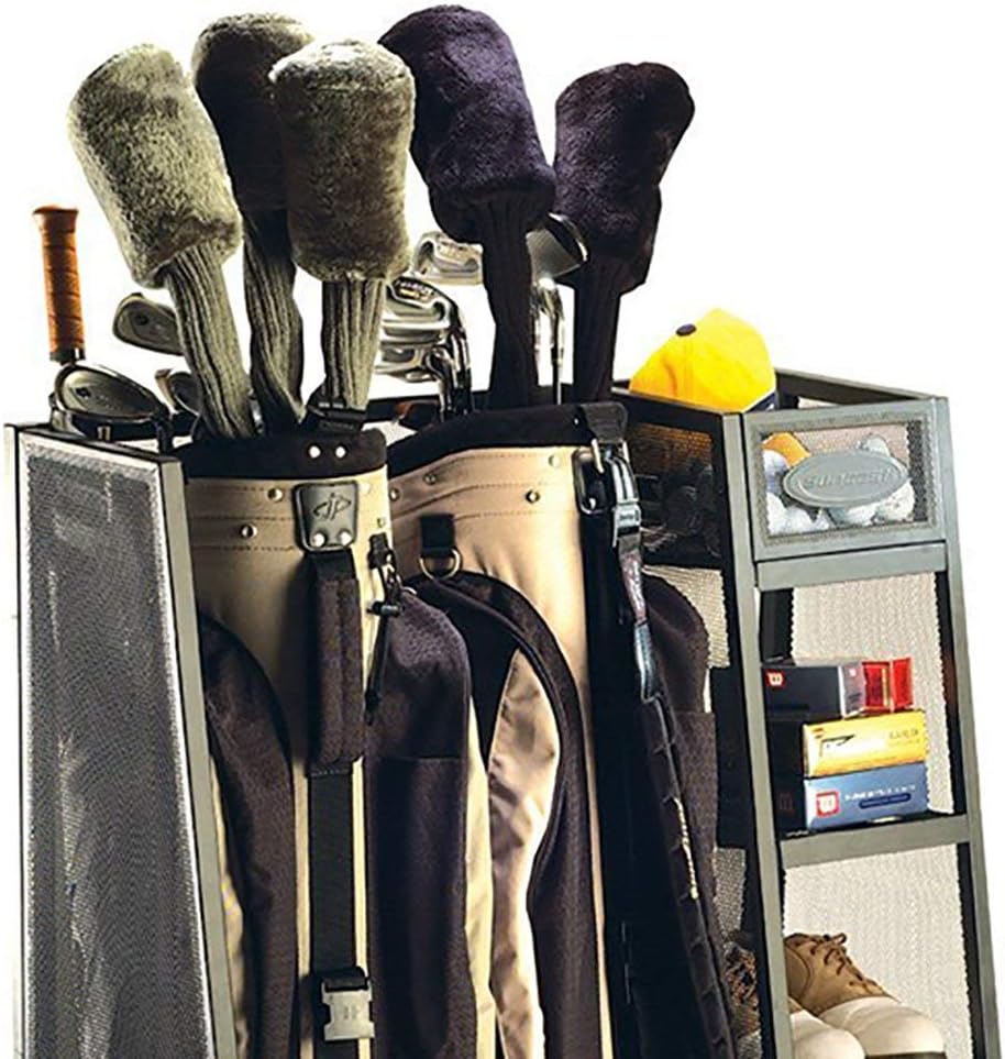 With golfing comes a lot of accessories and loose items, and with this 4 pack of Suncast Golf Bag Organizer, they stay neat and organized for the days that you're not on the tee box. It's constructed of heavy duty metal with leveling feet to adjust on uneven surfaces and can hold up to 105 pounds of golf goodies. There's room for 2 golf bags, a bin for loose balls, tees, and small things, and shelving for rain gear, shoes, and towels. Whether you play like a pro or not, store like a pro with this Suncast Metal Golf Bag Organizer.