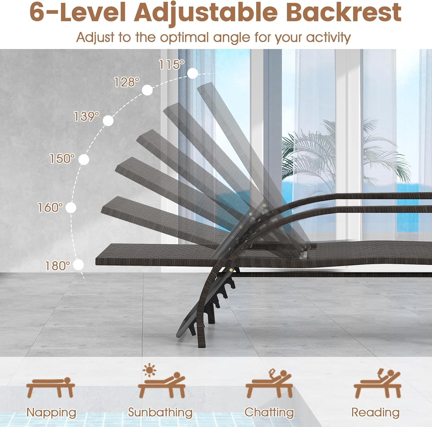 DescriptionRedefine your backyard comfort with this comfy and sturdy patio chaise lounge.Made from premium mix brown PE rattan with a breathable design, the patio recliner is ideal for outdoor use with eye-catching appearance. The 6-position adjustable backrest allows you to adjust to the optimal angle for your activity. Moreover, the sturdy metal frame with an X-shaped base supports up to 400 lbs, ensuring lasting stability. And the retractable footrest offers personalized comfort and space efficiency. Perfect for poolside afternoons or garden lounging, this recliner harmonizes comfort and elegance in every detail.FeatureHandwoven PE rattan offers long-lasting outdoor comfortAdjustable backrest with 6 positions for perfect loungingRetractable footrest enhances relaxation and seating versatilitySturdy metal frame supports up to 400 lbsAdjustable foot pads provide balance on uneven surfacesHigh backrest and armrests offer ergonomic supportConverts easily from recliner to traditional armchairSuitable for backyard, poolside, front porch and so onAssembly is requiredPlease avoid rain exposure for prolonged service lifeSpecificationColor of Rattan: Mix BrownMaterial: PE Rattan, MetalDimensions of Chaise Lounge Mode: 57.5”-72.5” x 25” x 22.5”-39.5”(L x W x H)Dimensions of Armchair Mode: 35.5”-50.5” x 25” x 22.5”-39.5”(L x W x H)Dimensions of Ottoman: 26.5” x 21” x 10.5”(L x W x H)Seat Height: 13.5”Seat Dimensions: 22” x 22”(L x W)Backrest Height: 29.5”Weight Capacity: 400 lbsNet Weight: 28 lbsPackage Includes:1 x Patio Chaise Lounge1 x Instruction