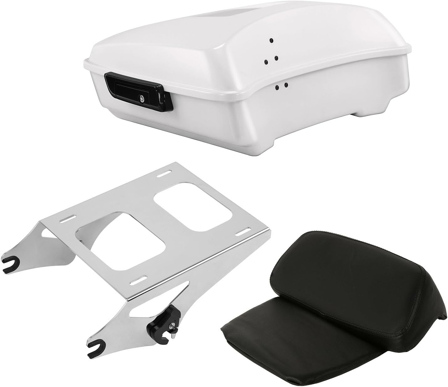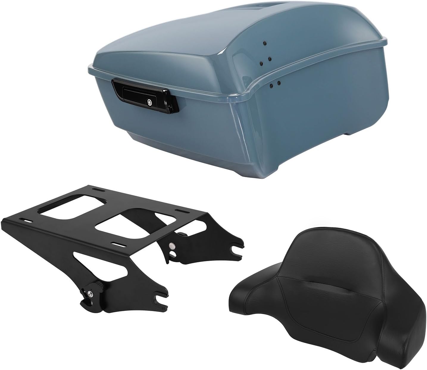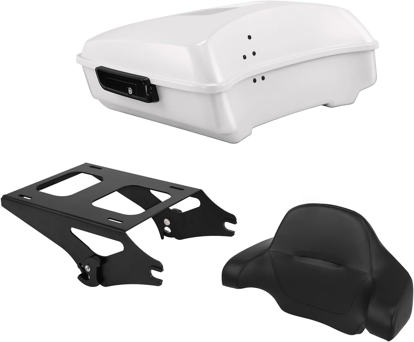 | Compatible with Vehicle Type | Vivid Black Chopped Tour Luggage Trunk w/Mount Rack Backrest Bracket Fit for Harley 2014-2025 Touring Models Road King Street Electra Glide Ultra-Classic |