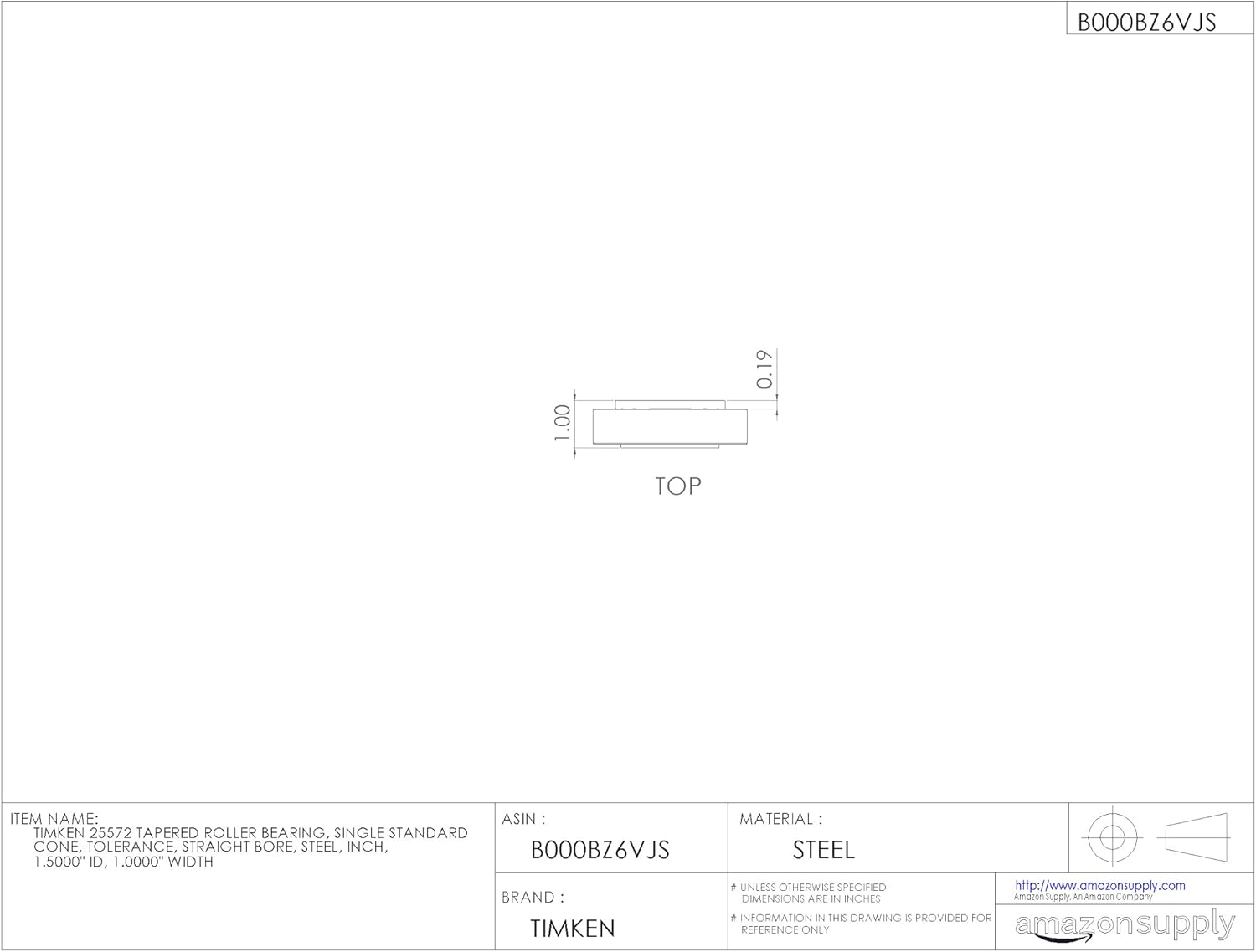 This Timken 25500 Series single cone with a stamped steel cage matches with a single cup (outer ring, sold separately) to assemble into a complete single tapered roller bearing, suitable for applications that support both radial and axial loads. The cone assembly does not contract or expand under operating temperatures ranging from -54 to 120 degrees C (-65 to 250 degrees F). Generally mounted in opposing pairs on a shaft to evenly distribute loads, this single cone is made of Timken's own high-alloy steel for durability, heat tolerance, and resistance to deformity under heavy loads. The stamped steel cage prevents rollers from coming into contact with each other during use, reducing friction, vibration, and noise. As part of a separable tapered roller bearing unit, this single cone assembly has an open design that allows for lubrication and accurate adjustments. This single tapered roller bearing is for use in high-load, moderate-speed applications that include automotive axle systems and conveyor systems in heavy duty industries such as mining, construction and agriculture, among many other applications.Specifications Met Tapered roller bearings--Boundary dimensions and series designationsISO 355Inch part numbering systemABMA standard 19.2 Width tolerance standardsISO 492Tapered roller bearing naming conventionsISO 720Rolling bearings use rolling elements to maintain the separation between moving parts to reduce rotational friction and support radial and axial loads. These elements can be one of the following types: ball, cylindrical, spherical, barrel, needle, spindle, or tapered. All rolling bearings are open, shielded, or sealed. Sealed bearings are lubricated with oil or grease in the bearing factory, while open and shielded bearings are meant to be lubricated in place, with periodic reapplication of lubrication, based on use. The shield protects the working parts of the bearing from environmental debris that may be introduced and could reduce the ball bearing speed and lifespan. Rolling bearings are used in a range of applications from agricultural machinery to conveying equipment, robotics, dental equipment, elevators, rolling mills, ship rudder shafts, and aggregate crushers, among others.The Timken Company manufactures a variety of bearings, alloy steels, and related components and assemblies that meet International Organization for Standardization (ISO) standards for quality assurance. Founded in 1899, the Timken Company is based in Canton, Ohio.