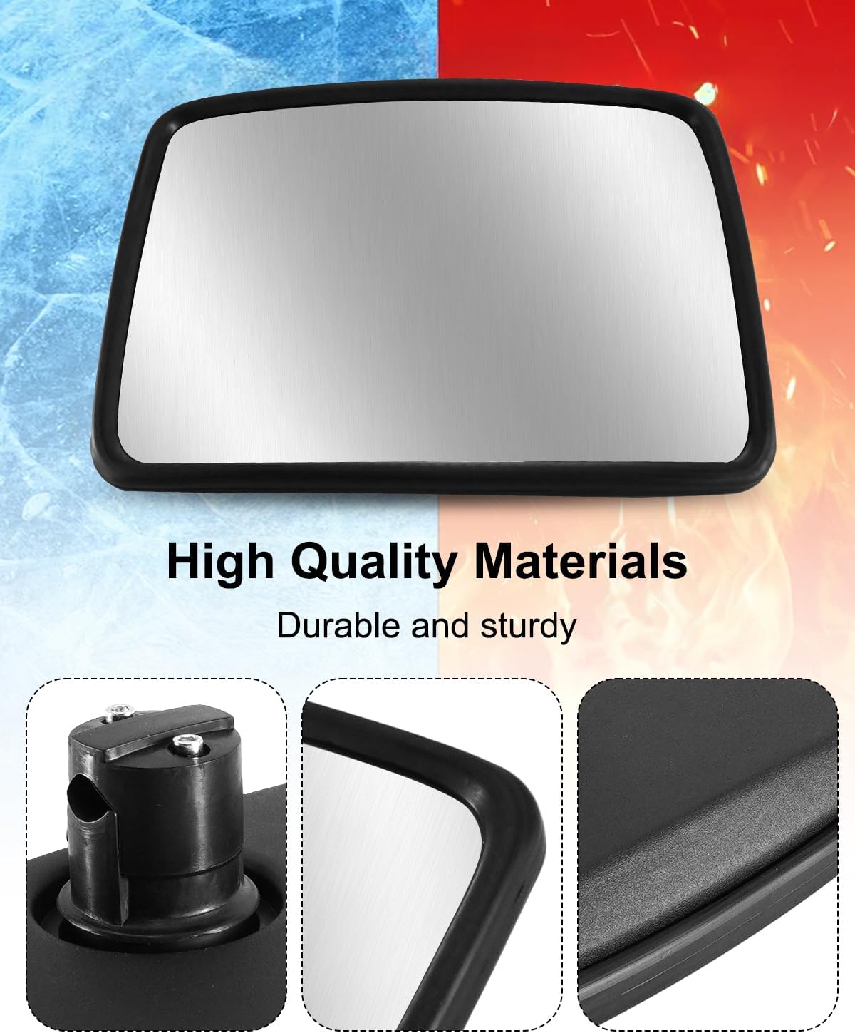 Compatible Models: Fit for Case 4030, 4230, 6130, 6405, 9120, 9230 Fit for John Deere 4030 4040 4050 4055 4230 4240 4250 4255 4430 4440 4450 4455 4555 4560 4630 4640 4650, 4755 4760 4840 4850 4955 4960 Fit for John Deere 5065M 5070M 5075E 5075M 5080M 5080R 5083E 5085M 5090M 5090R 5093E 5095M 5095MH 5100M 5100R 5101E 5105M 5220 5225 5303 5320 5325 5403 5420 5425 5520 5525 5603 5615 5620 5625 5715 5720 5725 5820Fit for John Deere 6010, 6020, 6030, 6100, 6100D, 6110, 6110D, 6115D, 6120, 6125D, 6125E, 6130D, 6140D, 6200, 6205, 6210, 6215, 6220, 6225, 6230, 6300, 6310, 6320, 6325, 6330, 6330 Premium, 6400, 6403, 6410, 6415, 6420, 6420S, 6425, 6430, 6430 Premium, 6500, 6505, 6506, 6510, 6515, 6520, 6525, 6530, 6530 Premium, 6534, 6534 Premium, 6600, 6603, 6605, 6610, 6615, 6620, 6630, 6630 Premium, 6715, 6800, 6810, 6830, 6830 Premium, 6900, 6910, 6910S, 6920, 6920S, 6930, 6930 PremiumFit for John Deere 7130, 7130 Premium, 7185J, 7200, 7205J, 7210, 7220, 7225J, 7230, 7230 Premium, 7320, 7330, 7330 Premium, 7400, 7410, 7420, 7430 Premium, 7430E Premium, 7500, 7505, 7510, 7520, 7530E Premium, 7600, 7610, 7630, 7700, 7710, 7715, 7720, 7730, 7800, 7810, 7815, 7820, 7830, 7920, 7930Fit for John Deere 8100, 8100T, 8110, 8110T, 8120, 8120T, 8130, 8200, 8200T, 8210, 8210T, 8220, 8220T, 8230, 8230T, 8300, 8300T, 8310, 8310T, 8320, 8320T, 8330, 8330T, 8400, 8400T, 8410, 8410T, 8420, 8420T, 8430 Model Year 2006-2009, 8430T, 8440, 8450, 8520, 8520T, 8530, 8630, 8640, 8650, 8850 Replace Part Number: Replace AL78021 Features: Wide-Angle High-Definition Lens: High-definition convex glass enhances rear and side visibility and reduces blind spots Sturdy and Durable Construction: High-strength engineering plastic and corrosion-resistant glass offer impact and rust resistance Unilateral Design: Symmetrical design allows for installation on either side, allowing one mirror to meet dual-sided requirements Quick Installation: Standard interfaces match factory-installed holes, eliminating the need for drilling or modification, making installation easy and time-saving